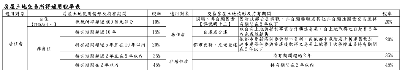 - 有使用自住四百萬優惠,請勾選符合自住房地減免優惠條件